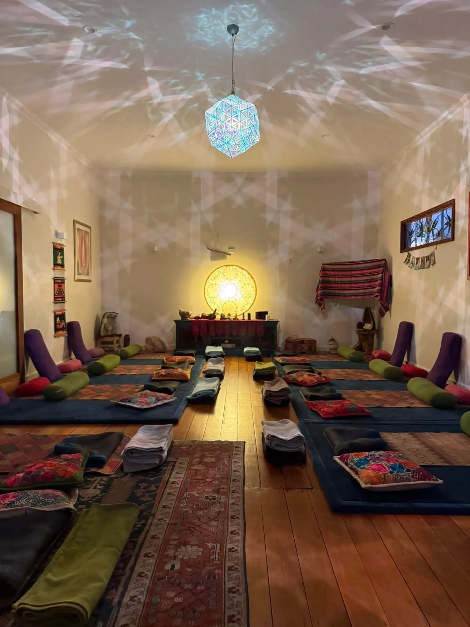 The Yoga Space is the heart of Heart and Soul of Wellnessa. A large, beautiful room filled with light, crystals and the stunning feature Zakay light.